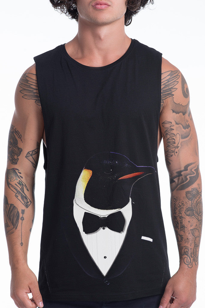 Release your inner animals and show your majestic strength for some rumble in the jungle in this men's emperor penguin muscle tank!